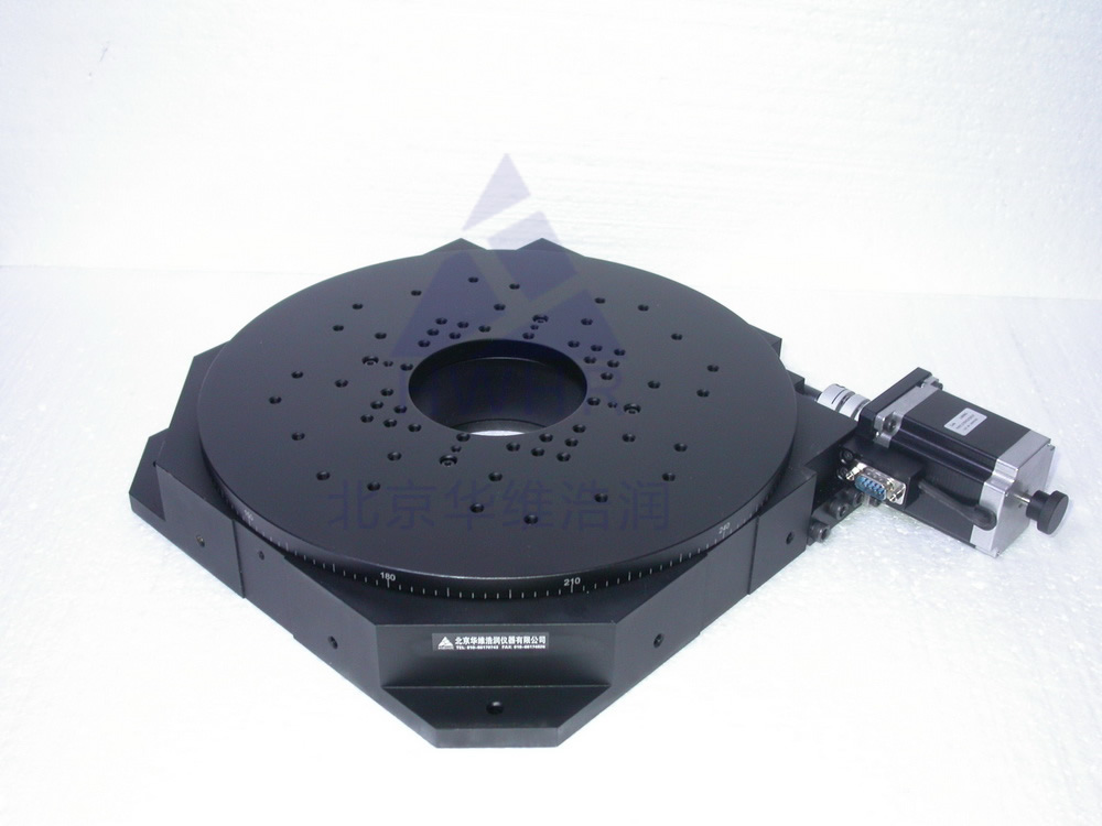 电控旋转台采用步进电机驱动,实现角度自动调整。精加工蜗轮蜗杆传动。精密竖轴系设计,精度高,承载大。采用高品质弹性联轴器。手动手轮配置,电动手动均可,台面中心有通光孔,可90o安装。可加装零位光电开关或限位开关,可换装伺服电机。标准接口,方便信号传输。