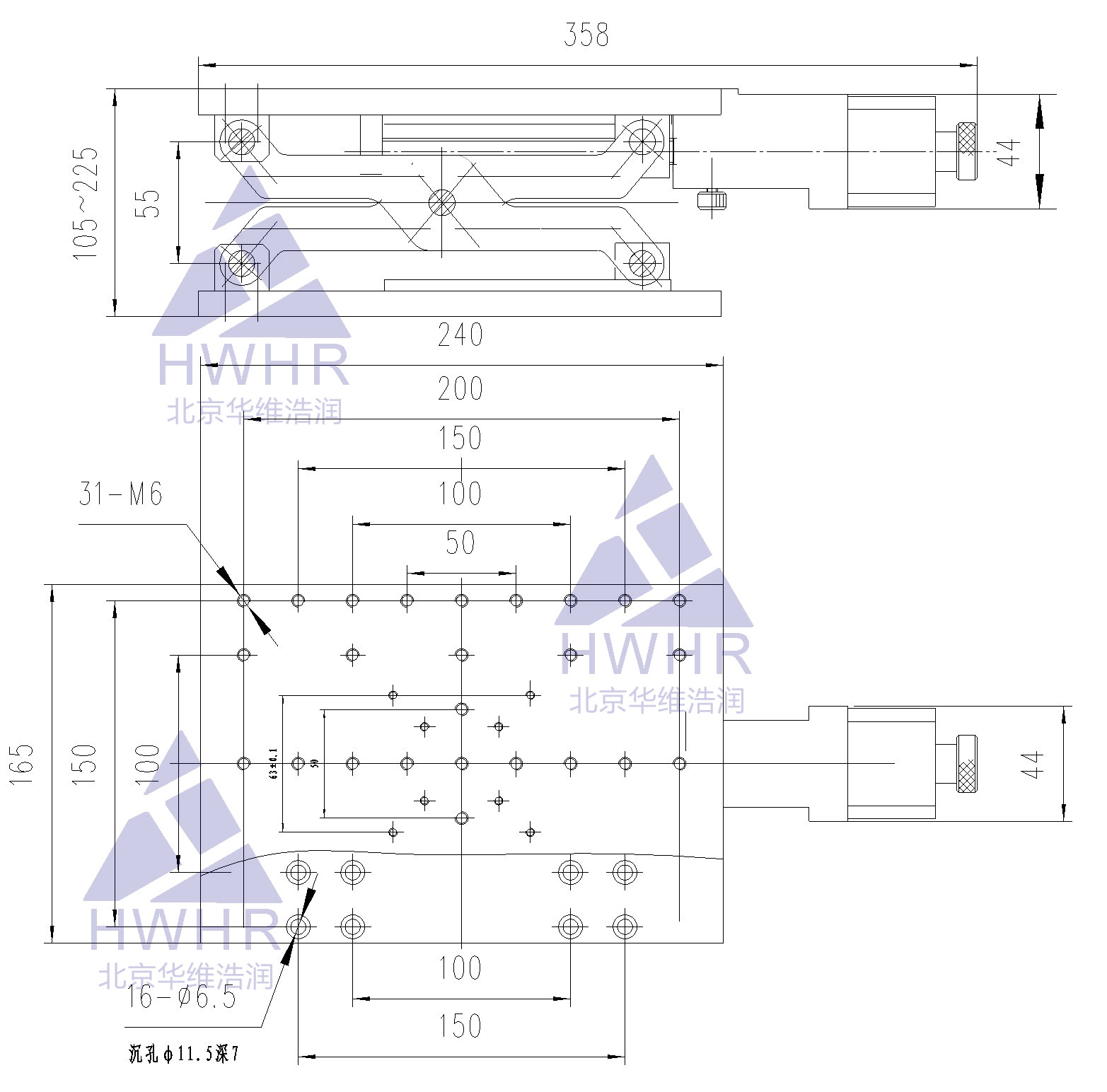 本产品采用剪形升降支撑,精研丝杆驱动,电控双导轨五轴过定位机构保证运动绝对平稳,舒适,精度高,承载大。上下两面多孔位设计,适用性强,均可作安装面。配有锁紧手轮。