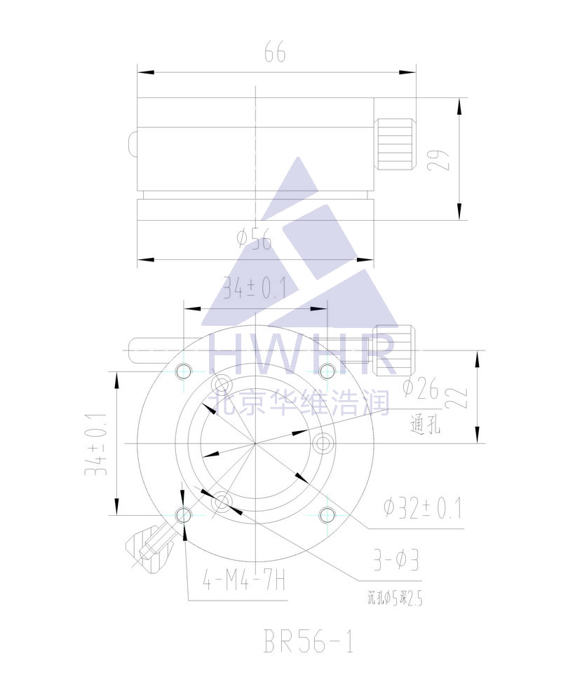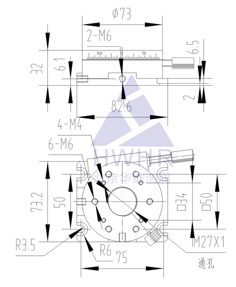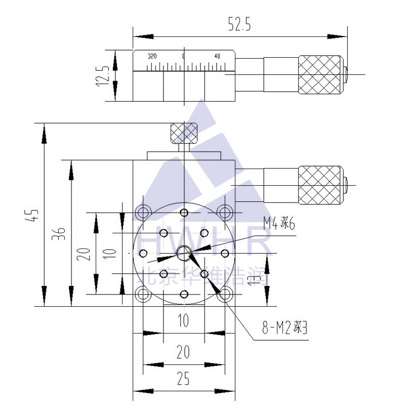 本产品采用精密轴系设计,M6X0.25超细牙螺杆驱动,精度高,稳定性好。中心有ф26mm的通光孔,可装配附件。上下有标准孔距的螺纹孔,适配性强。