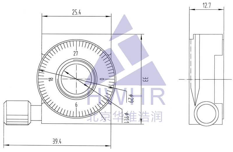刻划。可安装ф0.5inch或ф12mm的镜片。