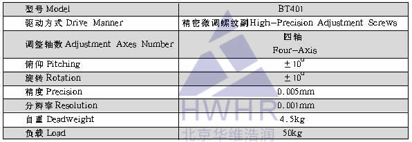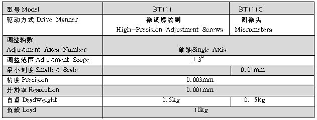 本产品采用M6X0.25微调螺纹副驱动,进口材质拉簧复位,实现倾斜旋转两维调整。