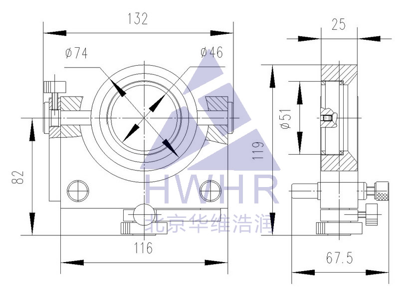 本产品可将镜片两维正交共面调整,保证光程不变。粗微调设计,快速精确。微调螺杆采用M6X0.25超细牙微调螺纹副,提供精细调整。配有锁紧手轮,防止微变。