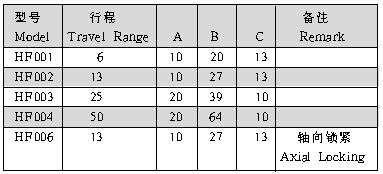 在不需要定量调整时,M6X0.25超细牙能提供比普通测微头精度更高的调节功能。此系列微调螺纹副可与测微头互换。微调螺纹副是螺杆经精磨后与螺母研配,加装特殊油脂组装成为一套微调装置,其舒适性、稳定性和耐用性极佳。螺距:0.25mm,灵敏度:0.0005mm。